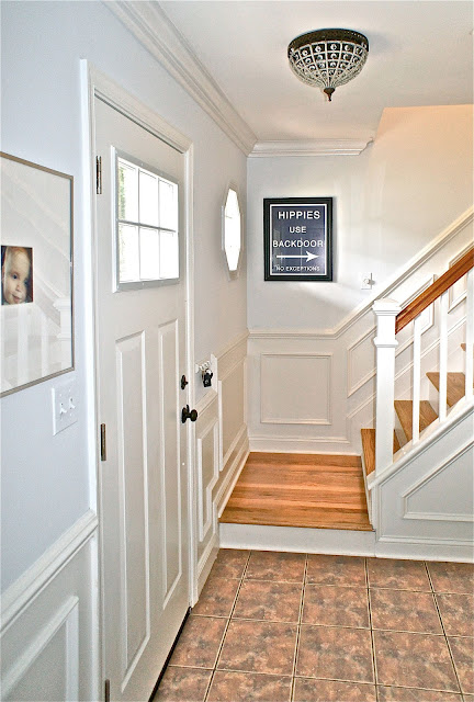 In our hallway and entry we had some gorgeous trim and molding. We weren’t in love with the dual-tone paint, though, so one of our early projects was painting it white.