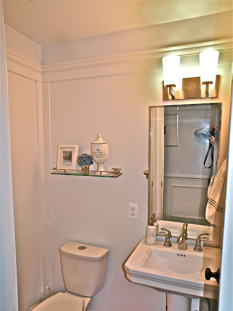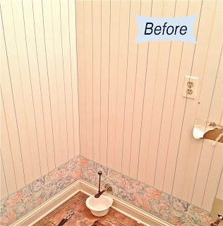 Removing wallpaper stinks, so Jason and I got creative with paint and molding to cover it with a faux wainscoting effect.