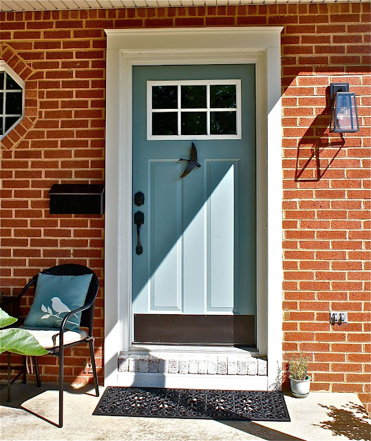I also painted the door itself and spray-painted the brass hardware. We found the new light at The Restoration Hardware Outlet, it might be my favorite part.